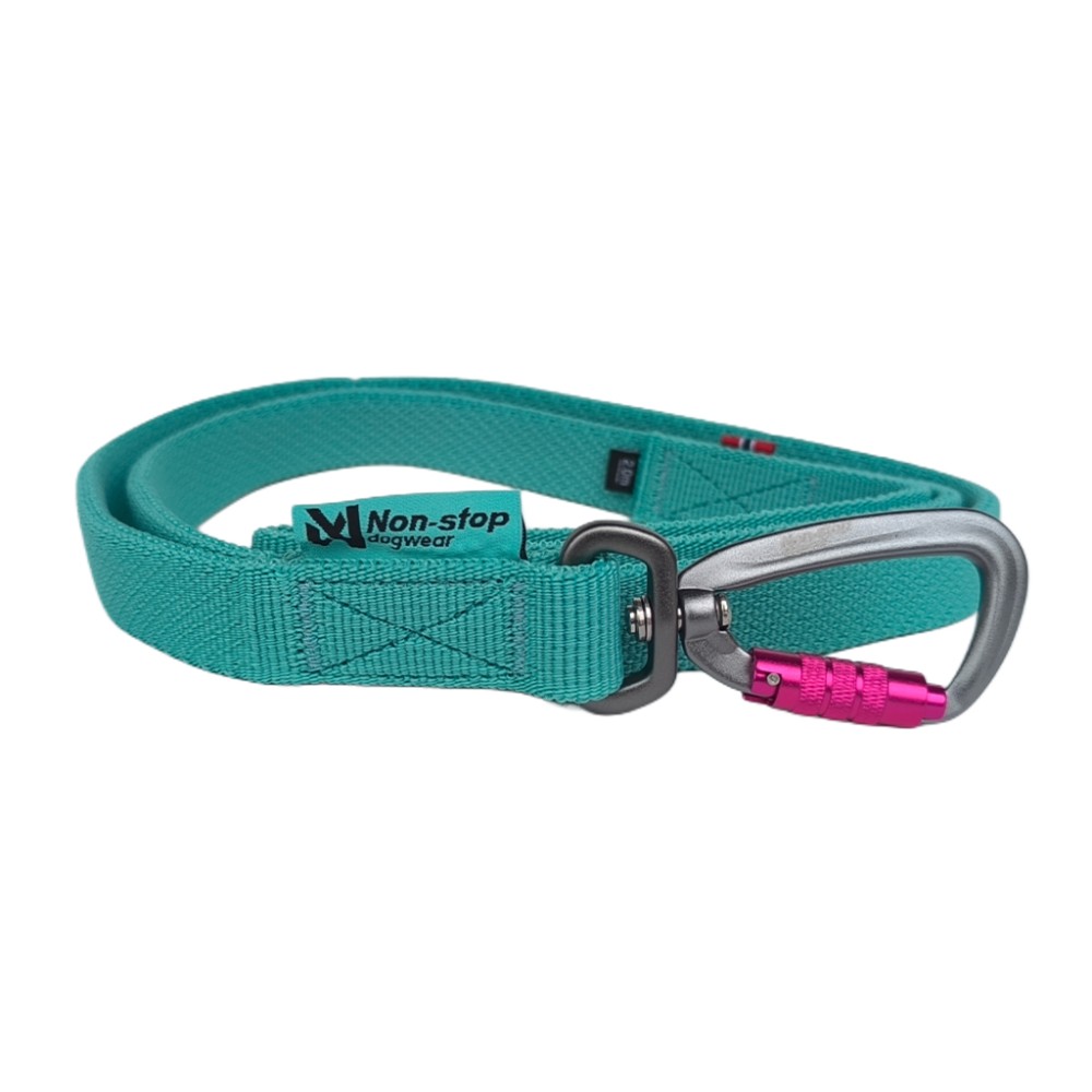 The Non-stop dogwear Bungee leash is developed for running, biking and skiing with dogs. The entire leash is elastic. The Bungee leash is available in two lengths, 2 meters (78,7 inches) and 2,8 meters (110,2 inches). The 2-meter leash is ideal for running and hiking. For activities like biking and skiing, where a safe distance from your equipment is required, the 2,8-meter length is the perfect choice. The core of the Bungee leash is made of high-quality rubber, strong enough to hold even the strongest dogs. The core is protected by a durable polyester layer. The Bungee leash is attached to your dog’s harness with a twistlock-carabiner.